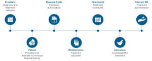 The combination of clinical confidence, patient confidence, and operational excellence will be required to be sure that we are prepared for biosimilars and ensure patient access. The patient’s journey is complicated and increasingly influenced by the payor and other stakeholders . Providers, consideration of the revenue cycle, RN educators, pharmacists, admixture technologists, and infusion RNs all must play together to ensure the success of biosimilars. In alignment with the patient journey, diagnosis and treatment selection will be accomplished by the provider. This will be followed by insurance authorization, treatment education, treatment scheduling, treatment admixture, and finally the delivery of the drug to the well-educated patient. There are many potentials for success as well as failure (Fig. 2).